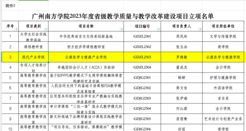 罗焕敏教授的项目《云康医学与健康产业学院》申报立项了2023年度省级教学质量与教学改革建设项目(现代产业学院)